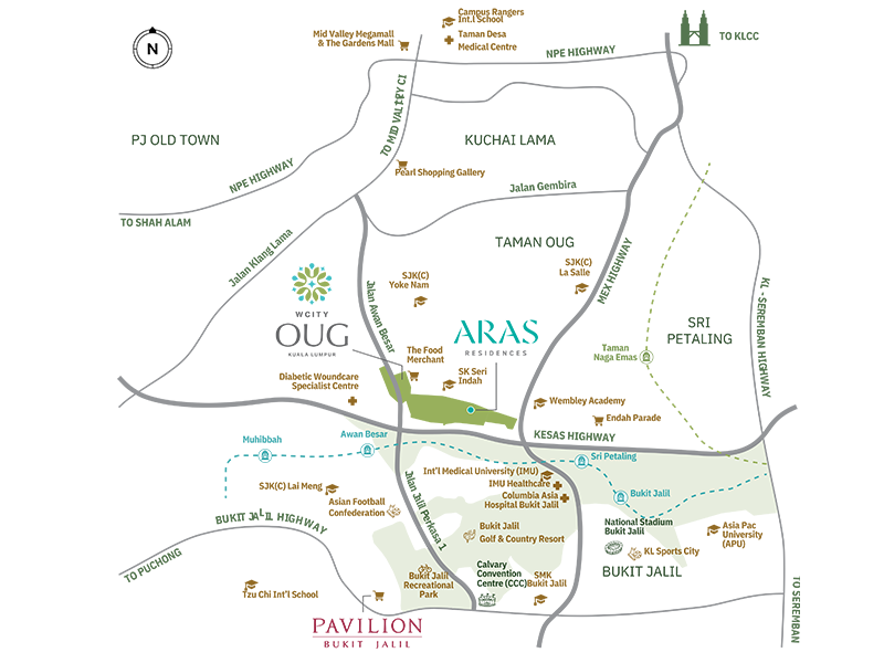 View WCity OUG TownshipAras Residences is a freehold parkfront development located within the vibrant WCity OUG township, designed to combine long-term ownership security with a lifestyle centered around greenery and wellness.